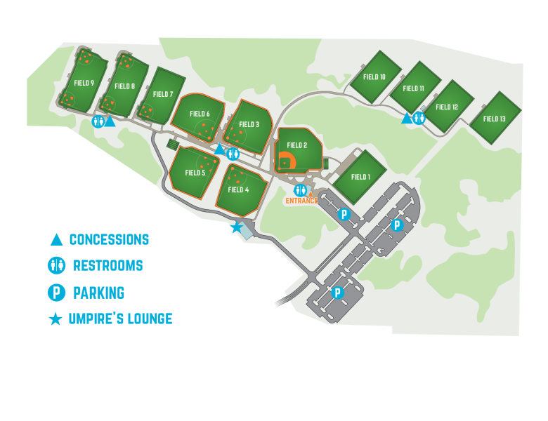The facility includes two championship fields with seating for up to 1,500 spectators, seven batting cages, and dedicated tournament buildings. Amenities such as on-site concessions, lounging pavilions, Wi-Fi access, and over 1,000 parking spaces enhance the visitor experience.