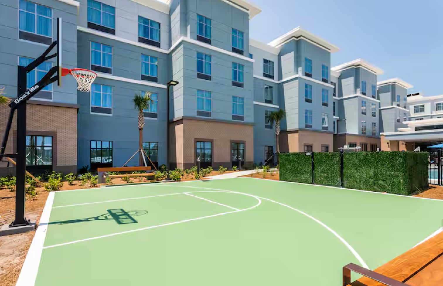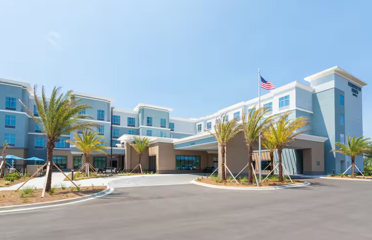 The Homewood Suites by Hilton Panama City Beach is a modern, family-friendly hotel located at 47 Chip Seal Parkway, just off Highway 98 and adjacent to the 160-acre Publix Sports Park. This prime location makes it ideal for guests attending sports events or seeking easy access to local attractions. The hotel is approximately 4 miles from the beach and about 20 miles from Northwest Florida Beaches International Airport.